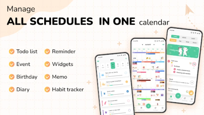 CUTE CALENDAR - ALL IN ONE fully integrates features such as TO-DO LIST, NOTES, DIARY, REMINDER, HABIT TRACKER, and WEATHER,... This makes it possible for users to do everything on a single app without downloading any other app.