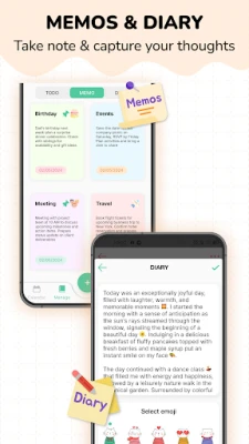 - Sticker: The app allows you to freely express your style through Stickers. This feature is applicable to both events and Todo lists.