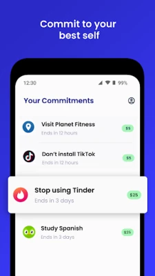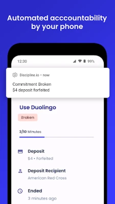 Unlike other self-improvement apps, commitments made with Discipline are final. There's no way to avoid completing it, without losing your deposit. Even uninstalling the app, or disabling it, does not bypass the system.