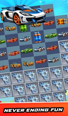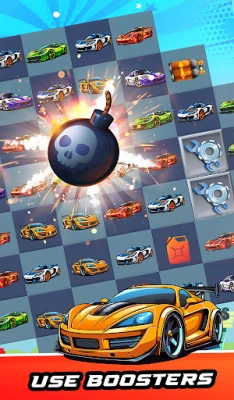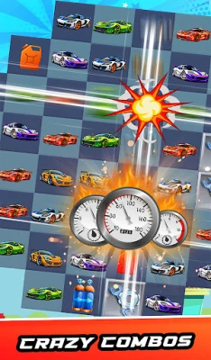 Race & Match: Hit the gas and race against the clock as you match vibrant gems to clear each level. From sleek sports cars to formidable velarians, match three or more vehicles to unleash explosive combos and achieve high scores.