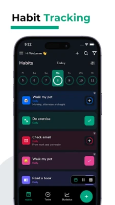 - Set the frequency of each habit or task (daily, weekly, monthly, yearly, or custom).