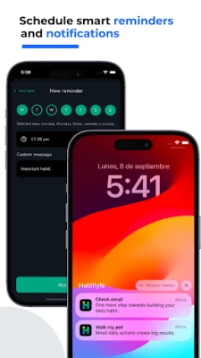 - Design daily, weekly, monthly, or yearly habits with total flexibility.