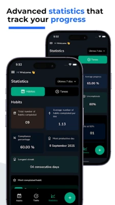 - Access your full analytics to see your progress in habits and tasks.