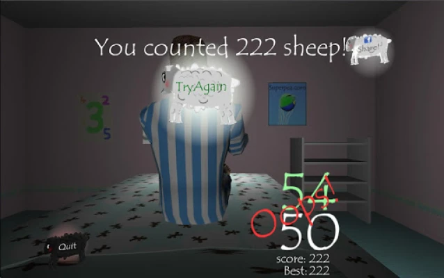 The game can also be used for people who find it difficult to sleep using "sleep mode" where sheep gently waft across the screen while you easily learn to count them and start to nod off into an easy dream..
